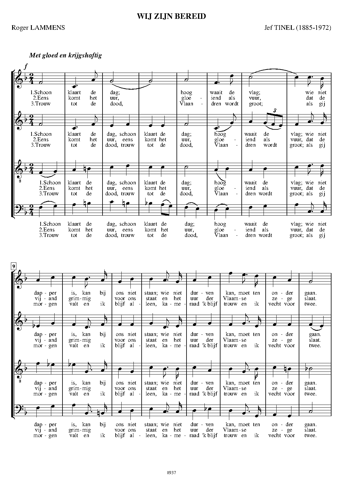 | Work Title | Wij zijn bereid (Schoon klaart de dag) |