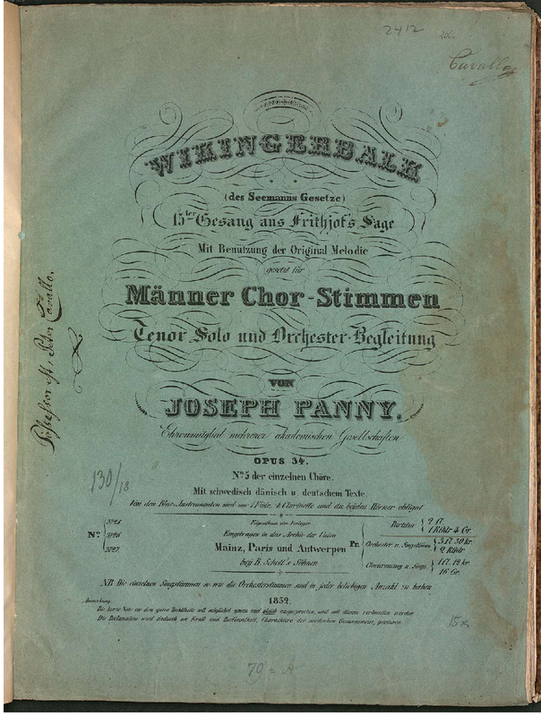 Wikingerbalk (des Seemanns Gesetze) 15ter Gesang aus Frithjof's Sage, mit Benutzung der Original Melodie gesetzt fuer Maenner Chor-Stimmen, Tenor Solo und Orchester-Begleitung; Vikingabalk. Vikingebalk