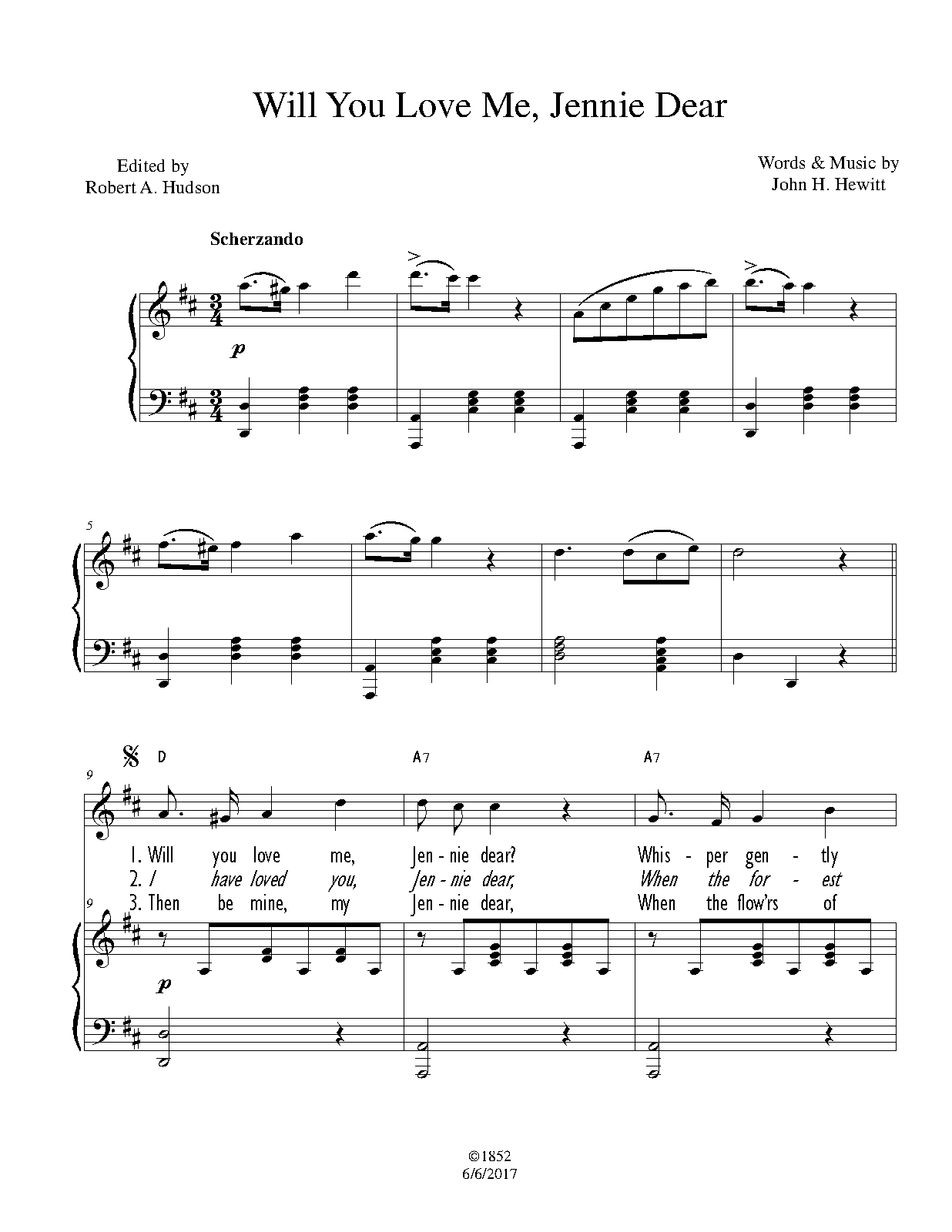 | Alternative. Title | Will You Love Me, Jennie? ; Ballad |