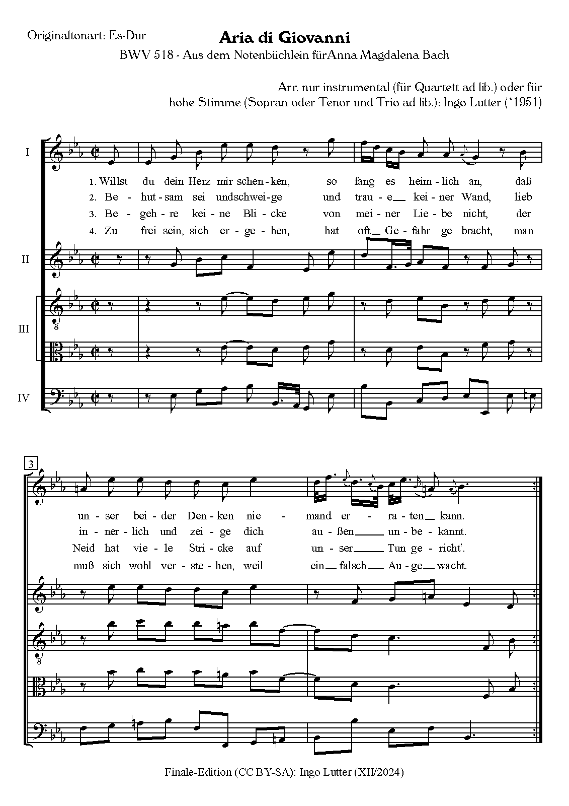Willst du dein Herz mir schenken, BWV 518 (Bach, Johann Sebastian)