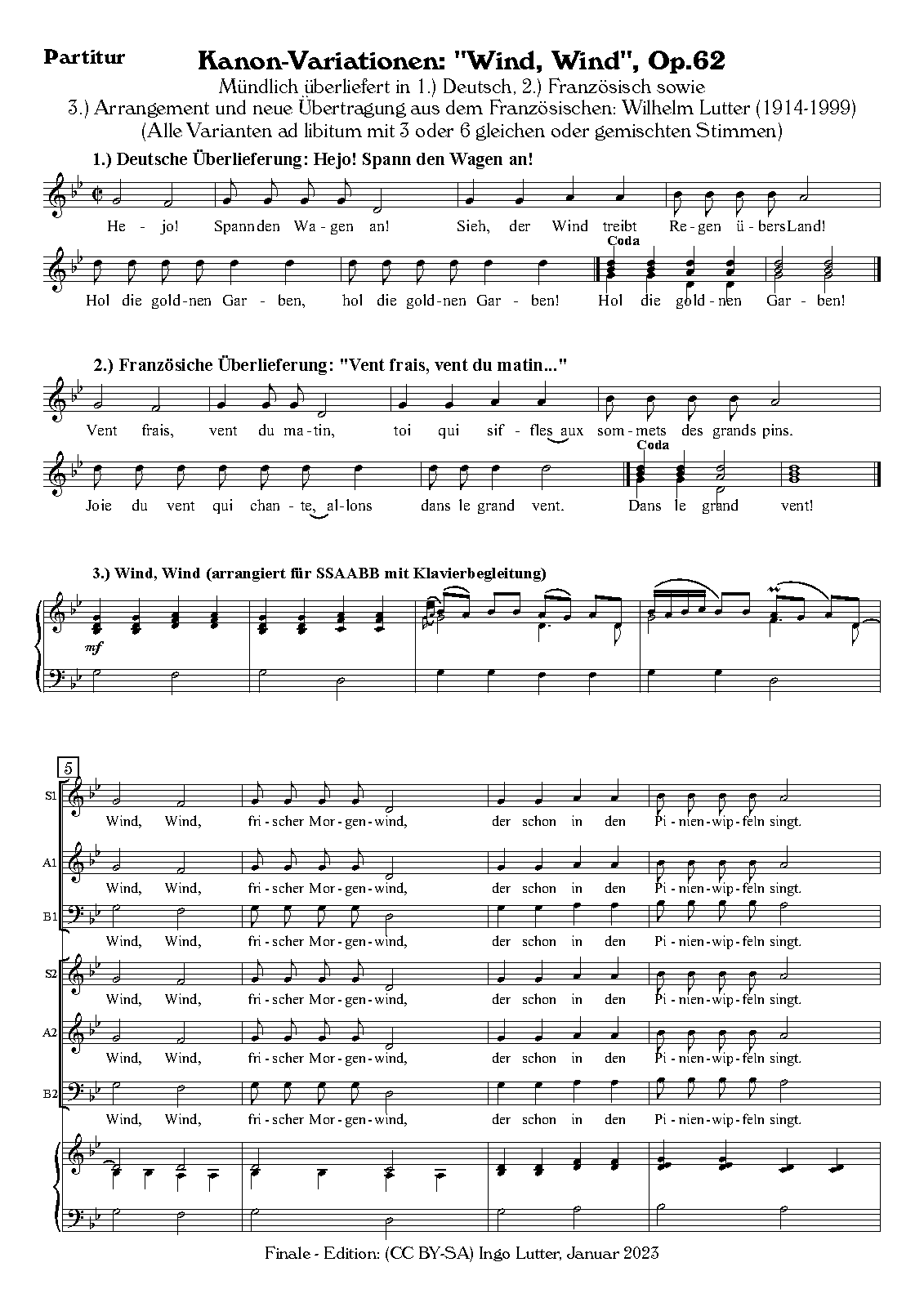 | Extra Information | Kanon-Varianten: 1.) Deutsch, 2.) Französisch (mündlich überliefert) 3.) neu arrangiert und ins Deutsche übertragen |