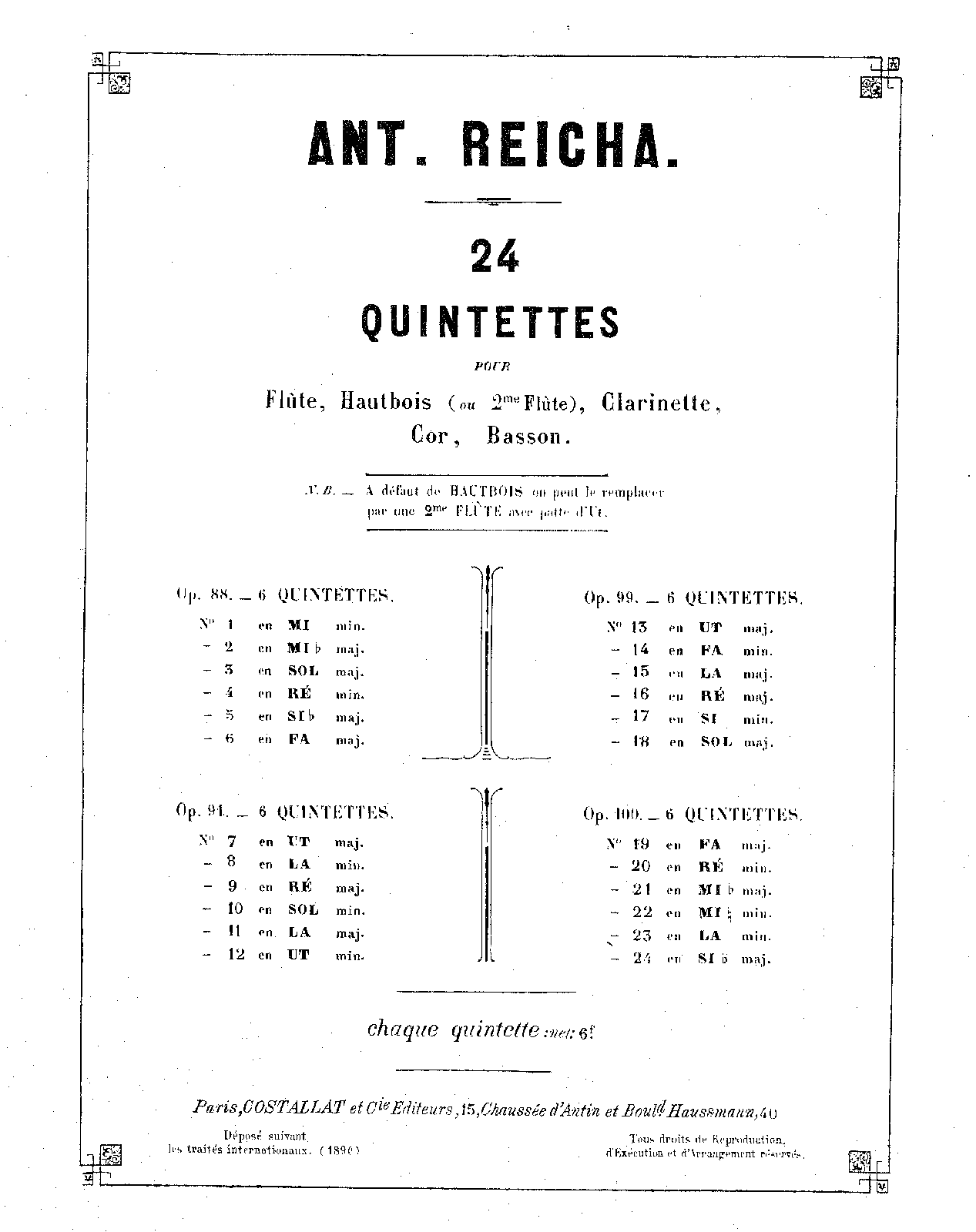 | Genre Categories | Quintets; For flute, oboe, clarinet, bassoon, horn; Scores featuring the flute; |