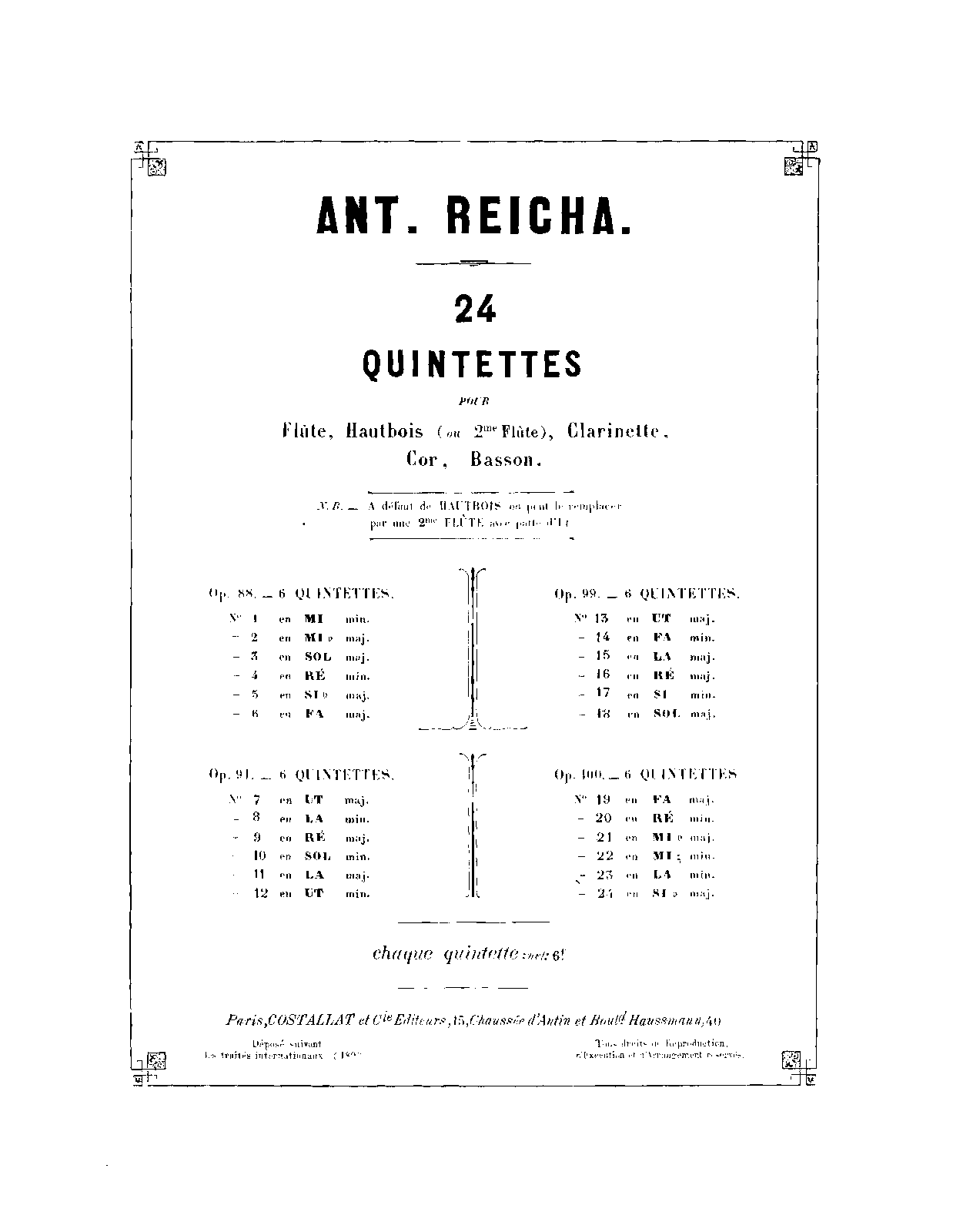 | Genre Categories | Quintets; For flute, oboe, clarinet, bassoon, horn; Scores featuring the flute; |