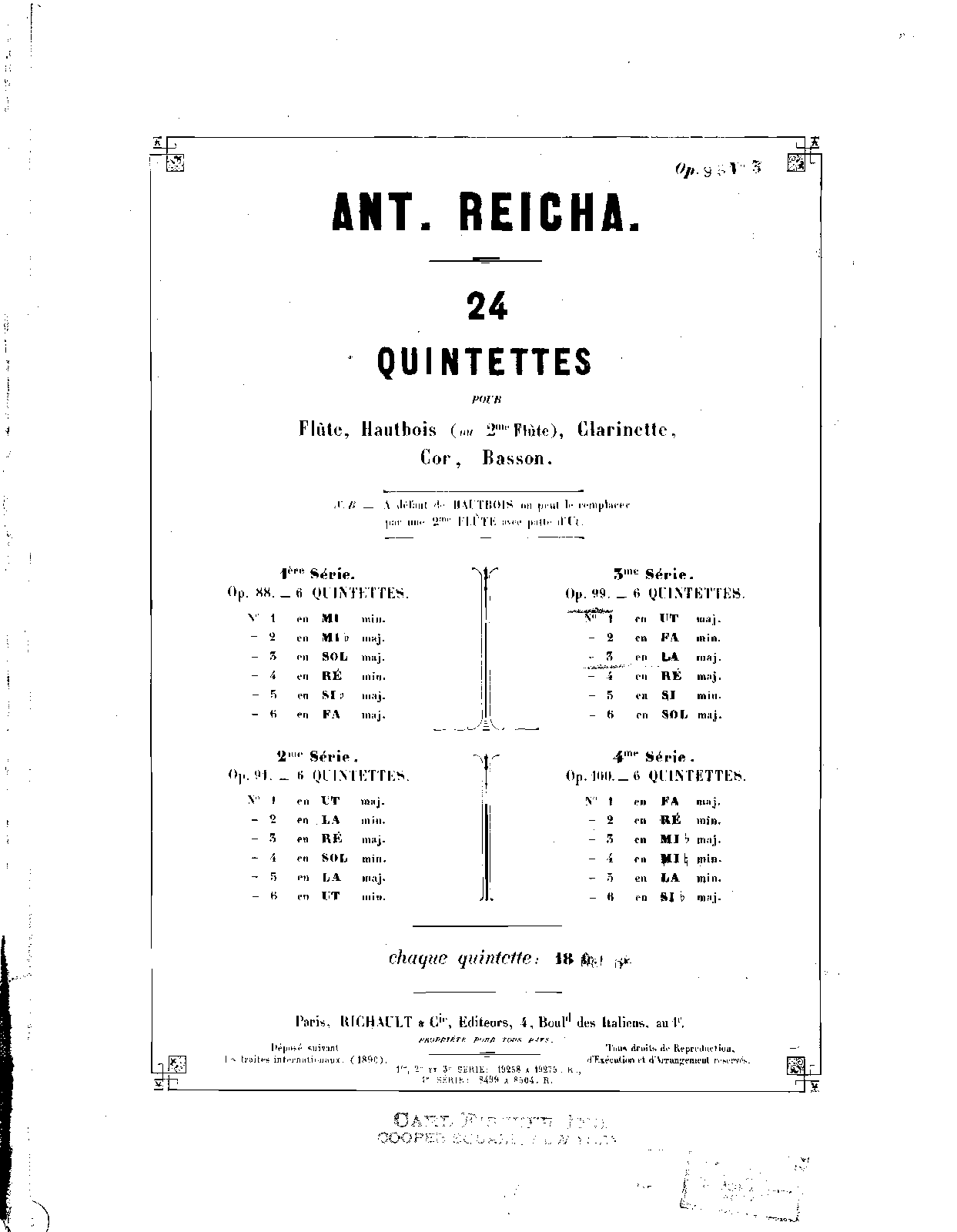 Wind Quintet, Op.99 No.3 (Reicha, Anton)