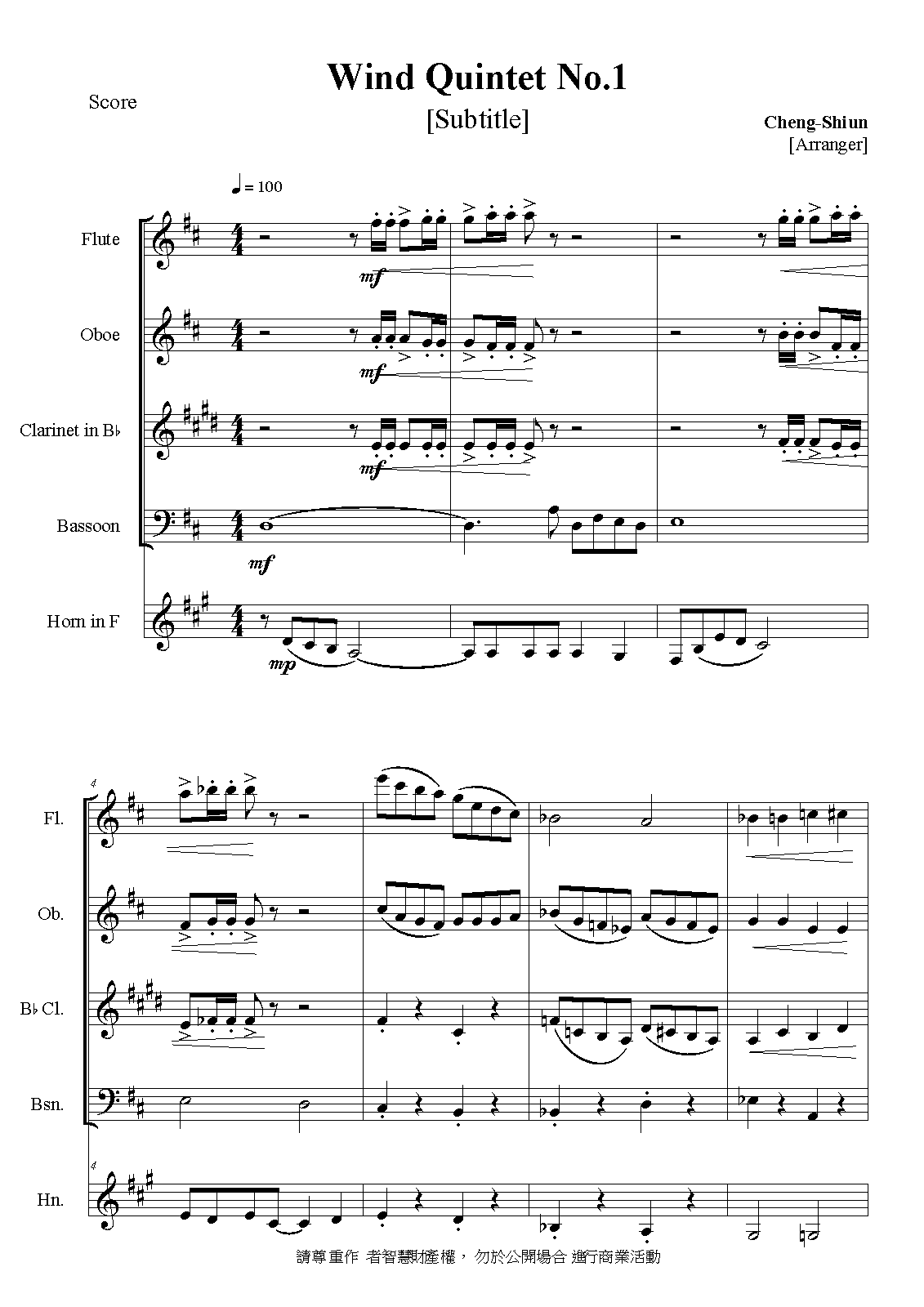 | Work Title | Wind Quintet No.1 |