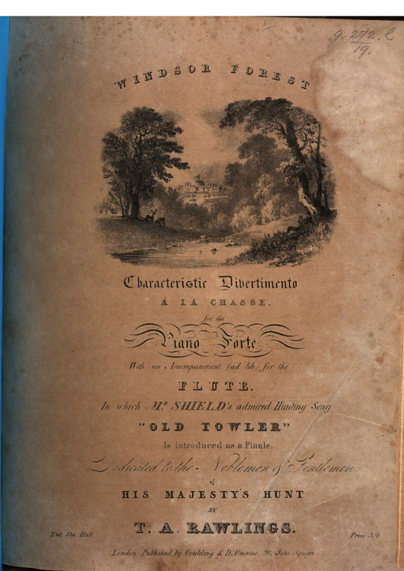 | Alternative. Title | Windsor Forest. Characteristic Divertimento à la chasse, for the Piano Forte with an accompaniment (ad lib.) for the flute, in which Mr. Shield's admired Hunting Song "Old Towler" is introduced as a Finale. |