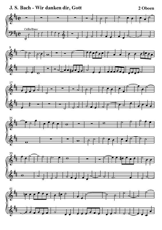 7 more: 2. Chorus: Wir danken dir, Gott, wir danken dir • 3. Aria: Halleluja, Stärk und Macht • 4. Recitativo: Gottlob! es geht uns wohl! • 5. Aria: Gedenk an uns mit deiner Liebe • 6. Recitativo: Vergiß es ferner nicht, mit deiner Hand / 7. Arioso: Halleluja, Stärk und Macht • 8. Chorale: Sei Lob und Preis mit Ehren • Engraving files (MuseScore)