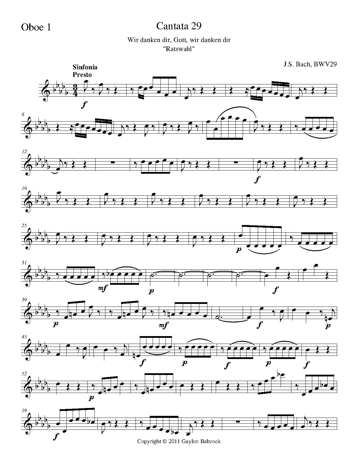Opus/Catalogue NumberOp./Cat. No. BWV 29 ; BC B 8