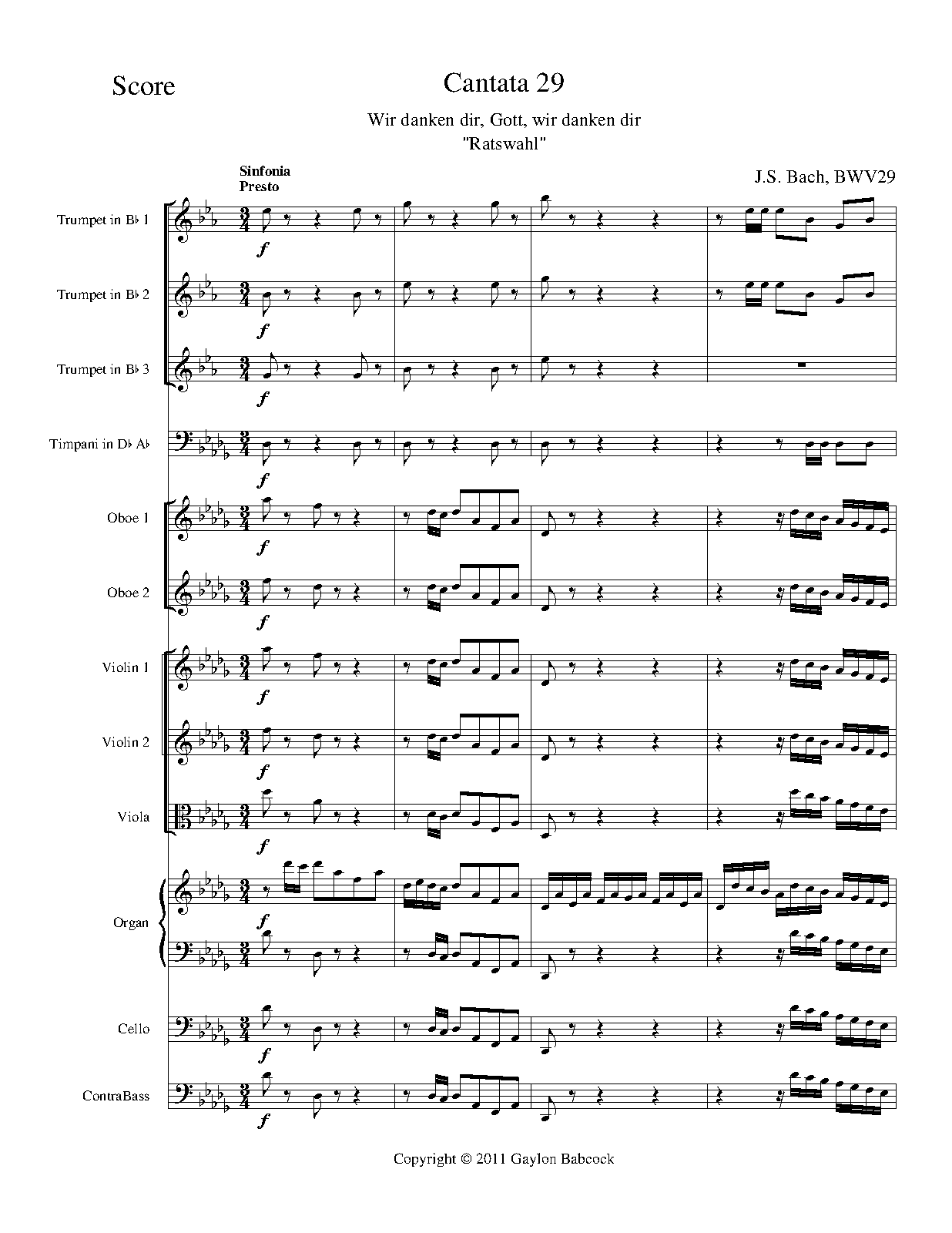 InstrDetail 2 oboes, 3 trumpets, timpani, strings, continuo, organ (obbligato)