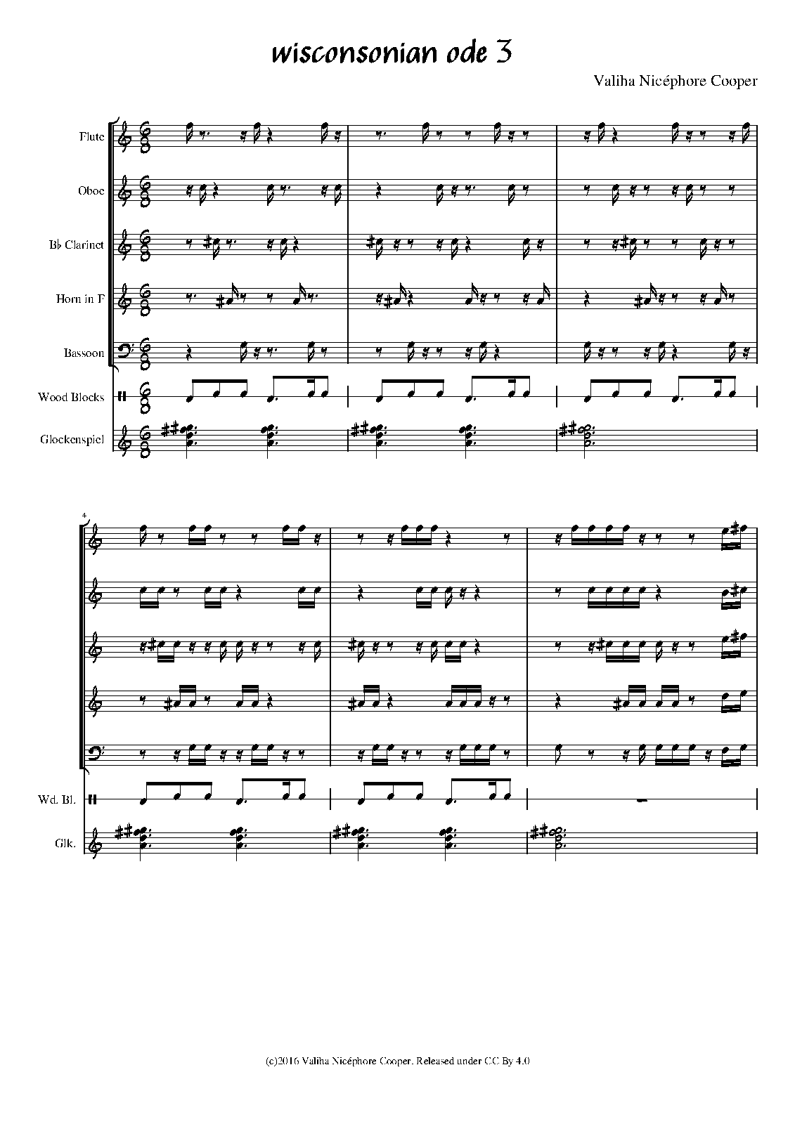 | Instrumentation | flute, oboe, clarinet, bassoon, horn, woodblocks, glockenspiel |
