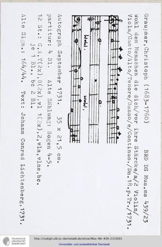 | Librettist | Johann Conrad Lichtenberg (1689-1751) |