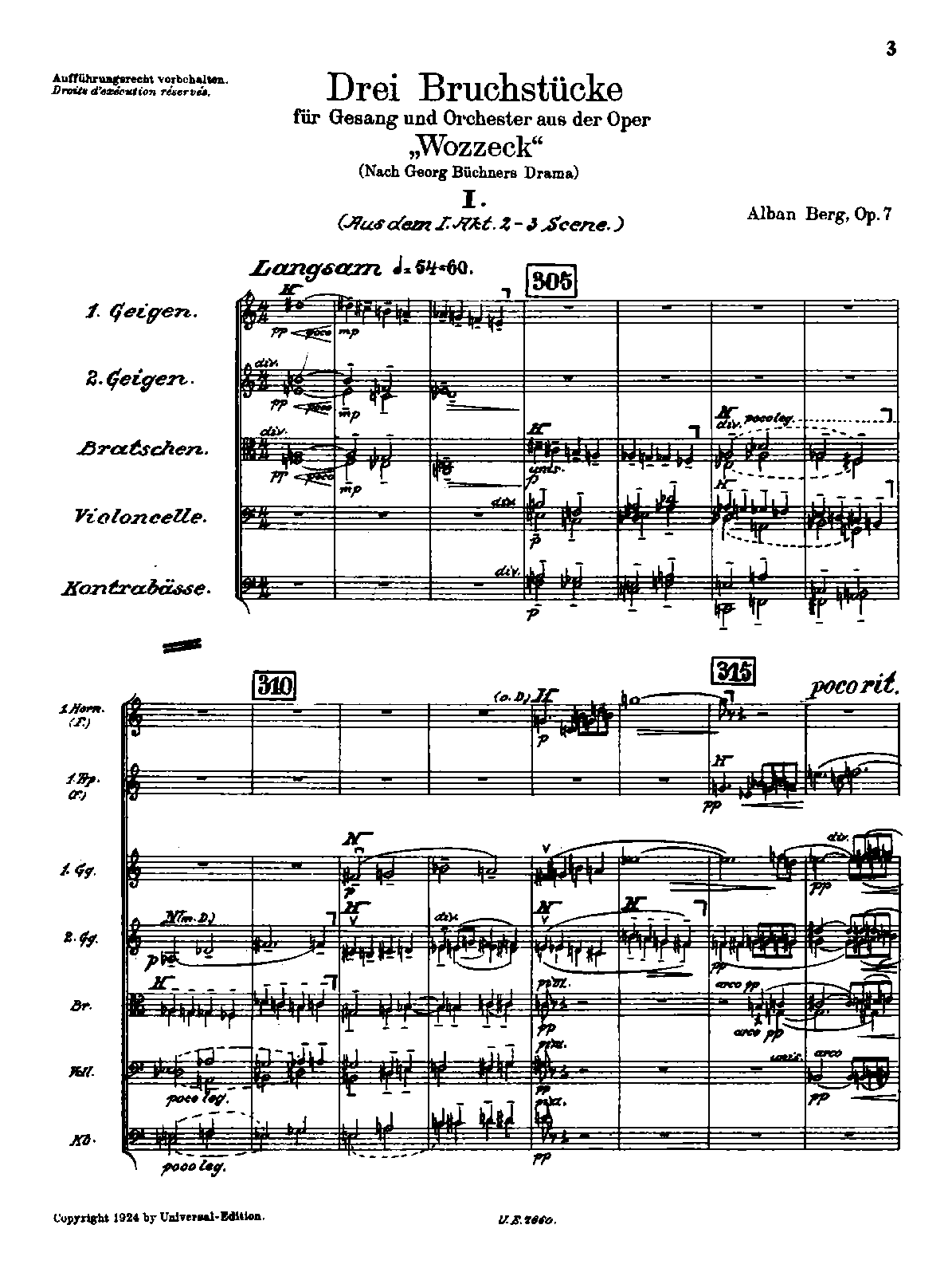 | Manuscript Sources | Proof full score, with composer corrections (ÖNB) Vocal score for 3 Pieces (ÖNB) |