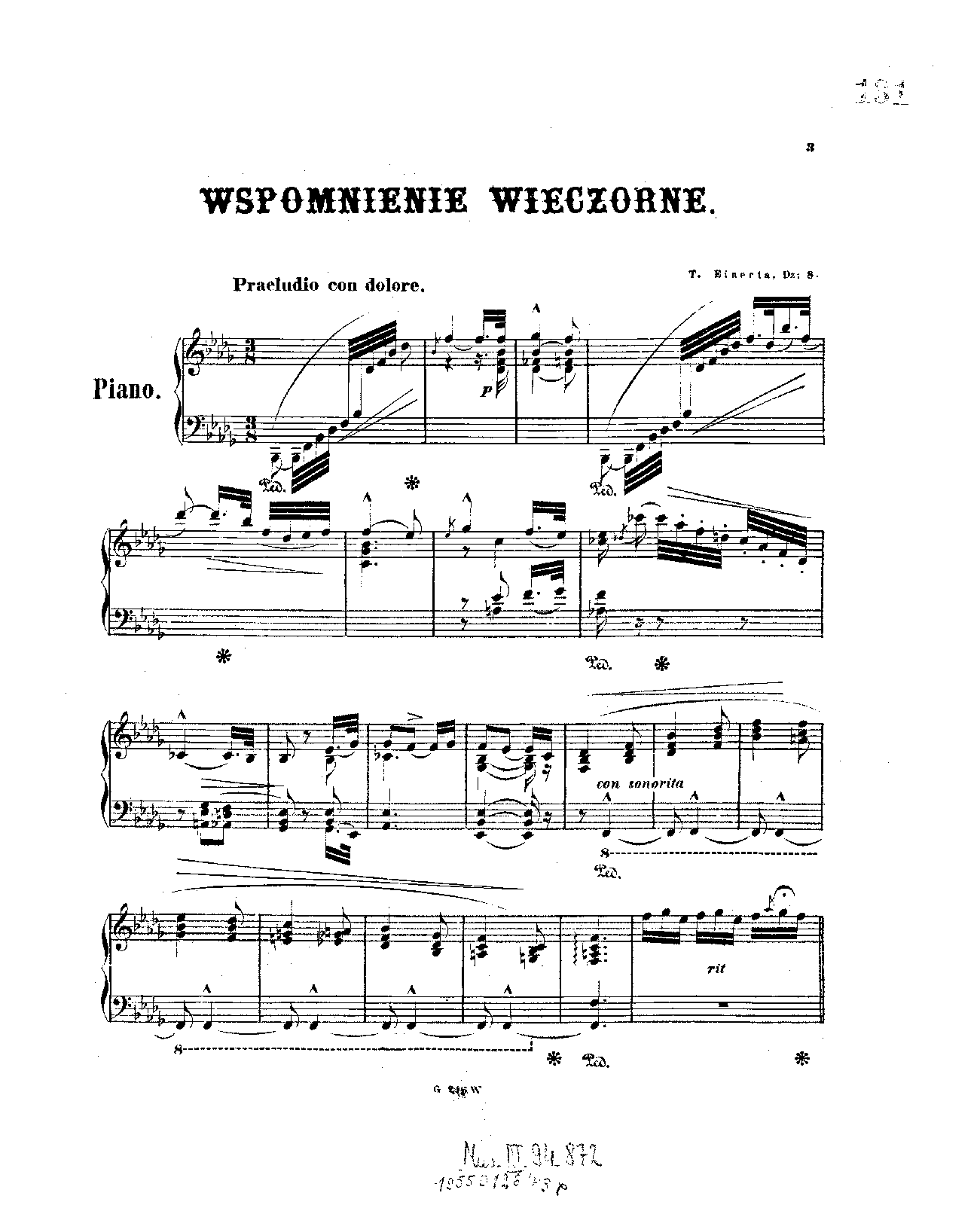 | Alternative. Title | Obrazek muzyczny na fortepian; [Evening Memory: a Musical Picture for Piano]; |
