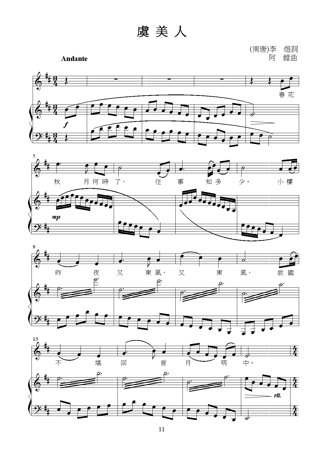 Instrumentation Voice, Piano