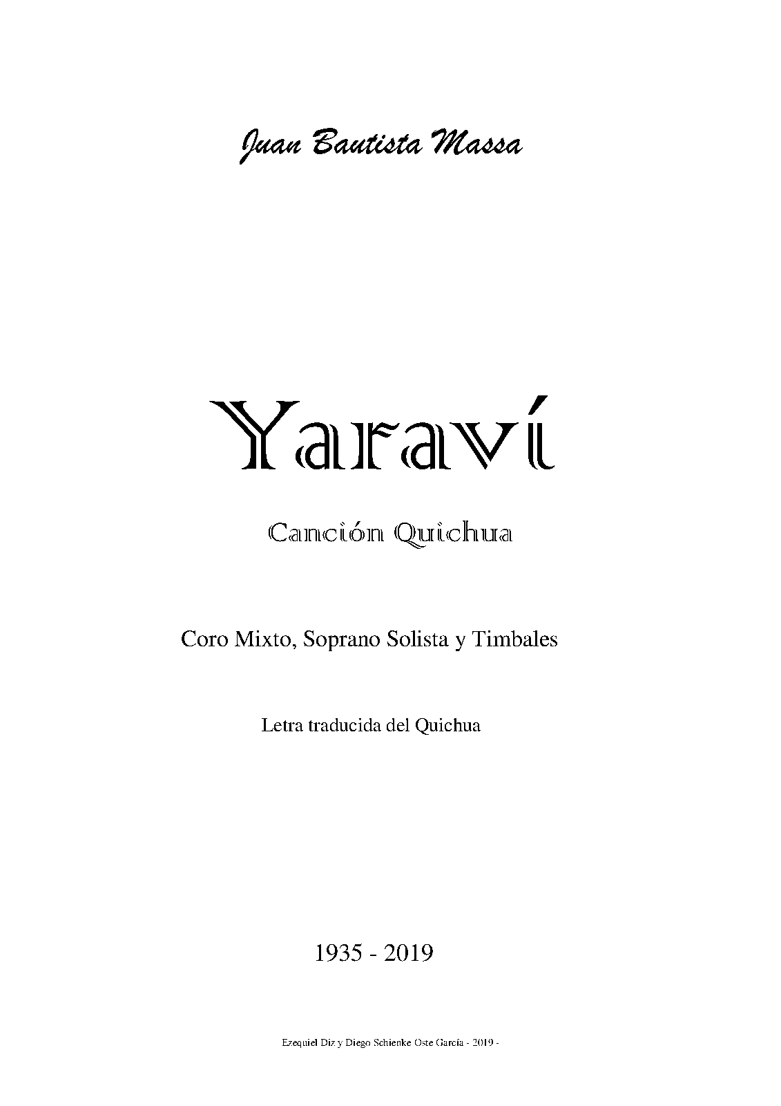 | Dedication | Al querido amigo Alfredo Schimun, homenaje del autor. Juan Bautista Massa, Rosario, Junio de 1935 |