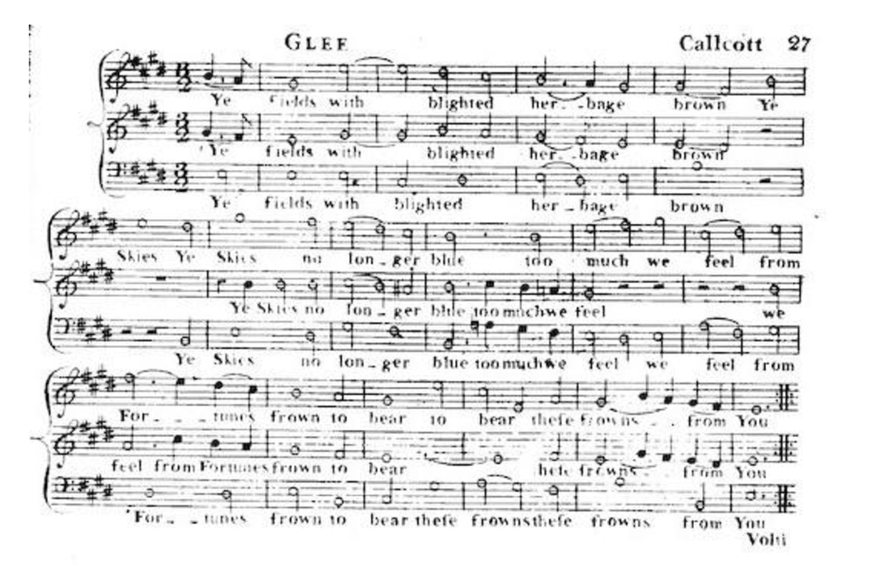 | Work Title | Glee: Ye fields with blighted herbage brown |