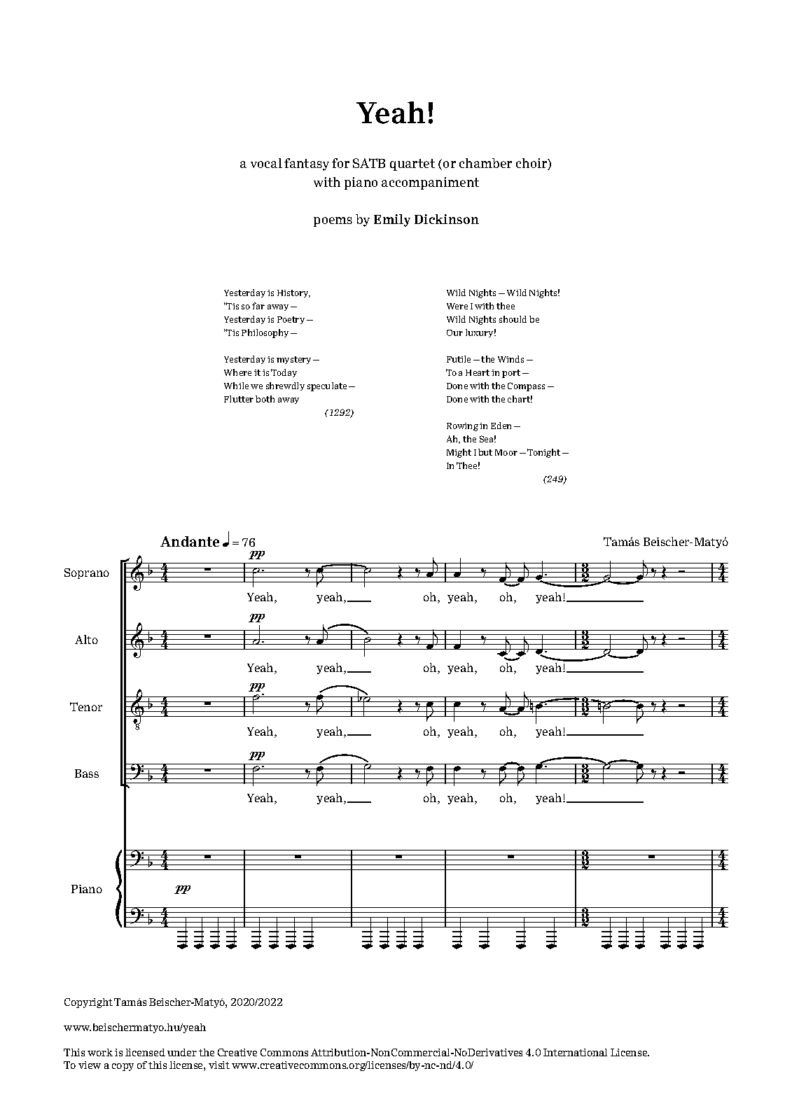| Extra Information | The composition is arranged for SSAA quartet as Yesterday! |