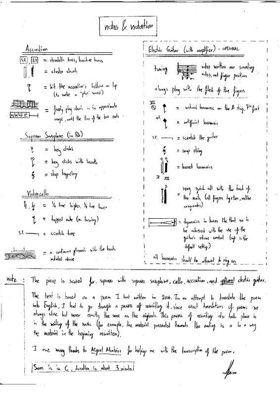 | Instrumentation | soprano, electric guitar, soprano saxophone, violoncello, accordion |