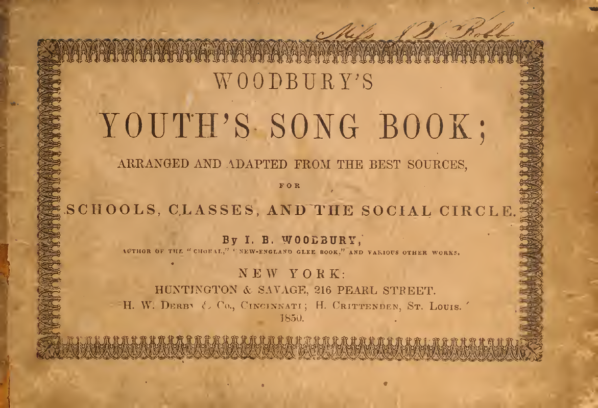 | Alternative. Title | Woodbury's Youth's Song Book; arranged and adapted from the best sources, for schools, classes, and the social circle. By I. B. Woodbury |