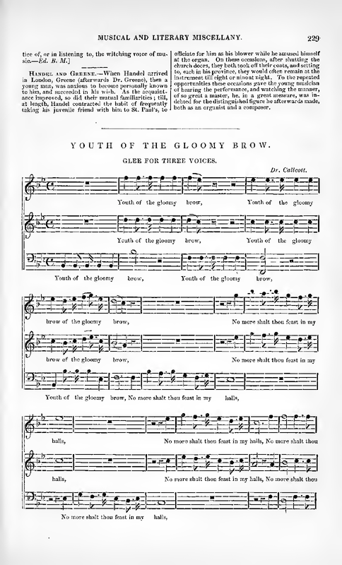 | Alternative. Title | Youth of the Gloomy Brow. Glee for 3 voices |