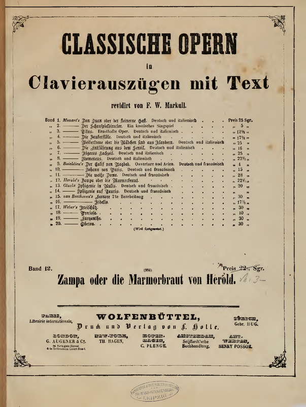 | Name Aliases | La fiancée de marbre; Zampa, vagy A márványmenyasszony; La fiancee de marbre; La sposa di marmo |