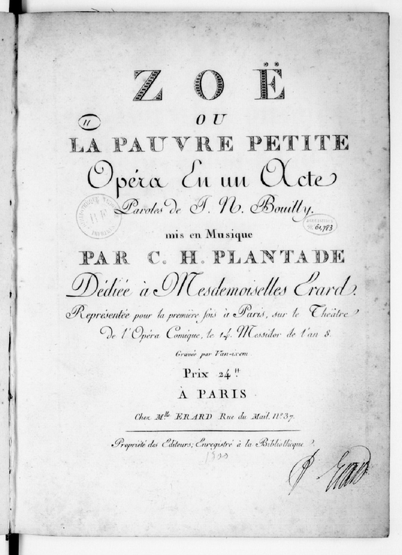 | Alternative. Title | Zoë, ou la Pauvre Petite, opéra en un acte |