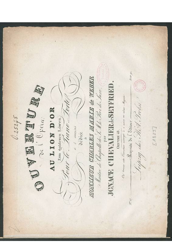 | Dedication | Dédiée à Monsieur Charles Marie de Weber Maitre de Chapelle de Sa M.le Roi de Saxe |