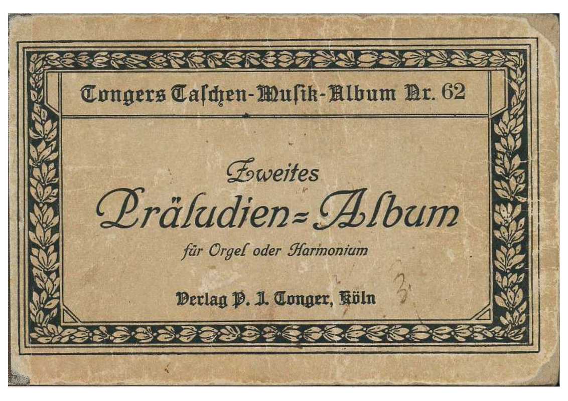 Zweites Präludien-Album für Orgel oder Harmonium. Eine Auswahl von Vor-, Zwischen- und Nachspielen in allen Dur- und Molltonarten bearbeitet von Carl Sattler. Tongers Taschen-Album Band 62.